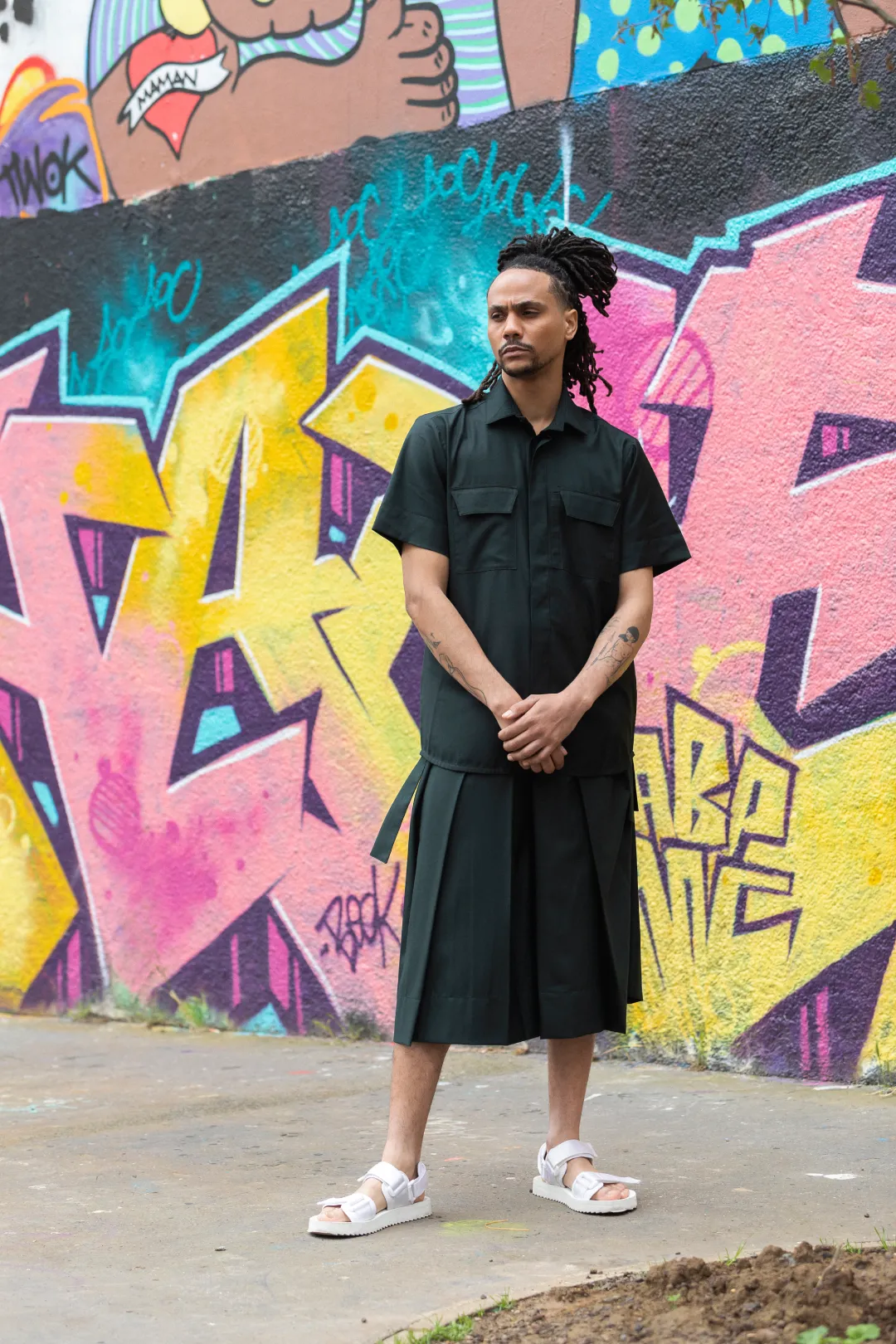 – Yoke and pleat on the back. Our iconic Colorado shirt now comes with short sleeves for summer. A straight cut that suits everyone, for all occasions. Buttoned up, worn open over a mesh top or Male or Kingston T-shirt, belted, this shirt features a clean design with essential details, perfect as a statement piece or to accessorize your look of the day… or the softness of the evening. You can find it our signature fabric which is normally used for suits, are in a chambray version.